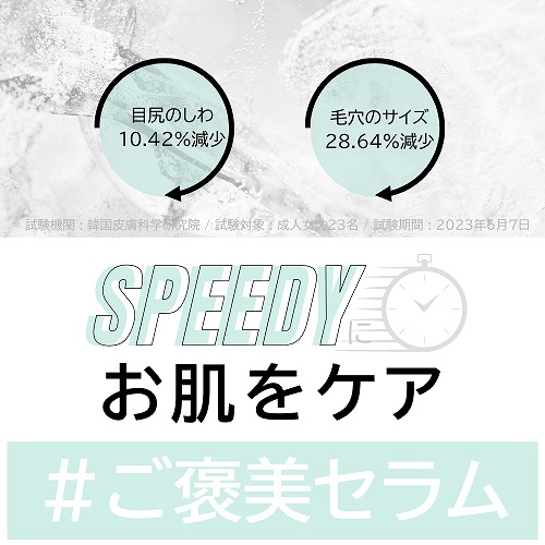 ② 試験機関で実証された数値:たった1回の使用で、目尻のしわが10.42%減少、毛穴のサイズが28.64%減少という高いケア能力が実証されています。