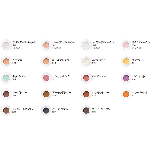 単色使いでアイメイクを楽しむのはもちろん、同系色でのグラデーション、複数のカラーを組み合わせてたり、パウダーなので混ぜて使うことでオリジナルのカラーを作ることも可能。